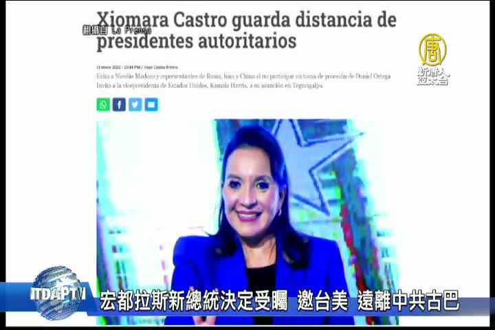 【新唐人亞太台 2022 年 01 月 19 日訊】美洲友邦宏都拉斯,27號將舉行新任總統卡蕬楚的就職典禮,中華民國副總統賴清德將與代表團一同出席。宏都拉斯媒體報導,「卡蕬楚正在與獨裁者保持距離」指出卡蕬楚,迴避俄羅斯、伊朗和中共的代表,轉而邀請美國副總統賀錦麗參加就職典禮。