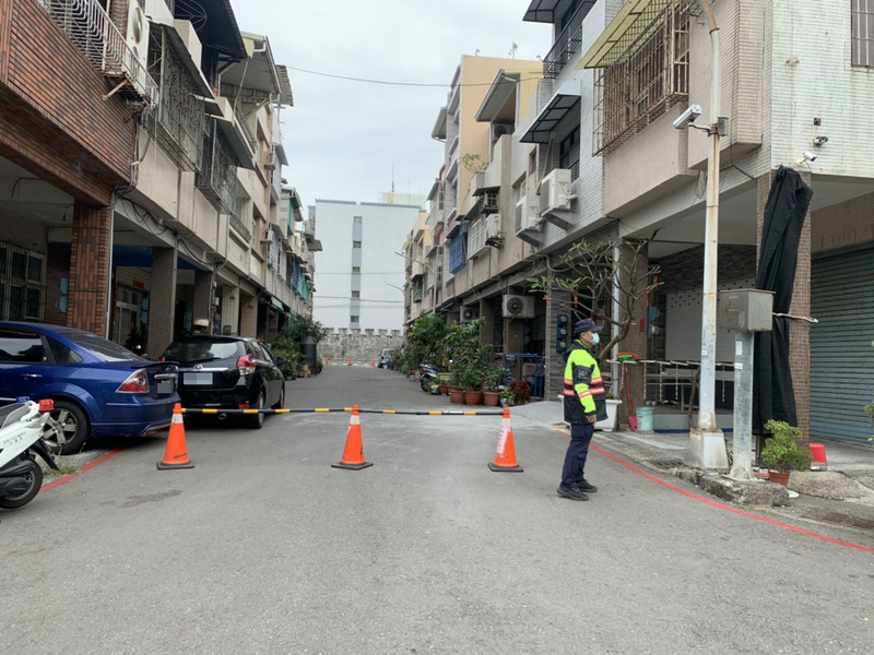 轄區警方對中央社記者證實,旗津區目前有1條巷子管制出入,2月2日起,這條巷子的巷頭、巷尾均各有1名員警24小時站崗,並放置交通錐、橫桿等物管制。