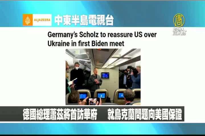 【新唐人亞太台 2022 年 02 月 08 日訊】來看到中東半島電視台報導:德國總理蕭茲將首次拜訪華府會晤美國總統拜登,並就烏克蘭問題向美國保證德國美國的盟友立場。