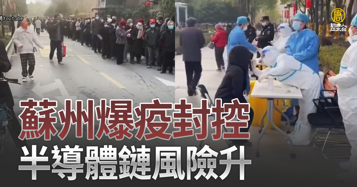 【新唐人亞太台 2022 年 02 月 15 日訊】鏡頭轉到中國大陸,台商投資重鎮蘇州,爆發Omicron確診案例,當局進行交通封鎖,民眾限制外出,由於蘇州也是全球半導體生產重鎮,台廠聯電在當地和艦廠,以及封測大廠京元電,位在當地廠房傳出確診,也影響全球半導體供應鏈。