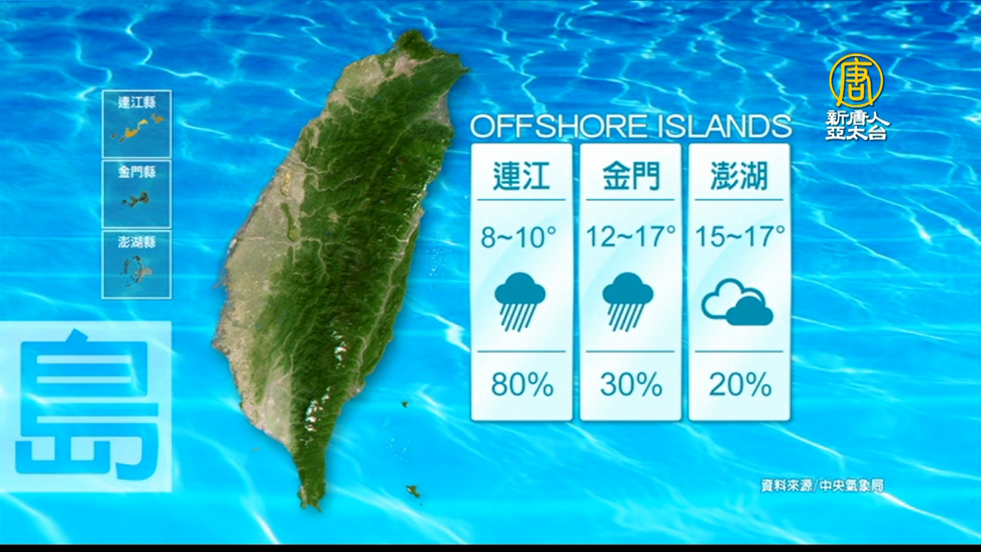2022-02-16 09:09:00歡迎您收看2月16日的早安新唐人,我是唐潔安,先來帶您關心天氣。今天的天氣和昨天類似,早晚偏涼,白天北部高溫約17至19度之外,其他地區大約為20至22度,要特別注意的是,周六冷空氣南下,一路影響到下周一,強度逼近強烈大陸冷氣團,全台濕冷,有望成為今年最強冷空氣,北台灣低溫下探十一度。帶您一起來看到國際媒體重要訊息。