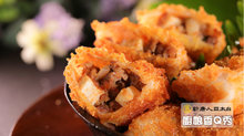 6. 油鍋160度熱油炸至6分鐘,表面呈金黃色澤,完成。用餐巾紙去些油,擺盤完成。