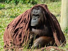 園方表示,保育員近日為紅毛猩猩「咪咪」準備咖啡色毛毯,聰明的她立刻發揮時尚潛力,披上新裝走秀,博得滿堂彩,今天又換上喜氣洋洋的桃紅色披風,露出羞澀的笑,一旁的「阿宏」也披上格紋外衣,展現帥氣的一面。