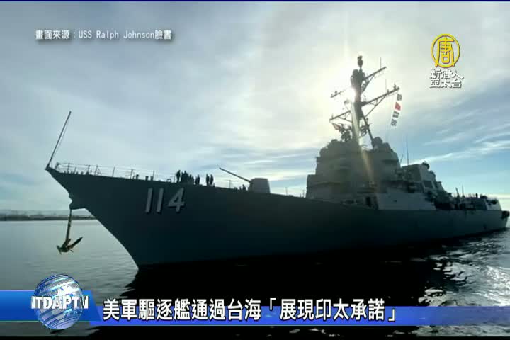 【新唐人亞太台 2022 年 02 月 26 日訊】俄羅斯24日入侵烏克蘭,引發國際關注北京會否趁勢升溫台海緊張,美國海軍驅逐艦「拉爾夫‧強森號」(USS Ralph Johnson DDG-114),今天(26日)由南向北通過台灣海峽,此外,美軍還派出一架EP-3E電子偵察機到台灣海峽南口。美軍發布聲明指出,軍艦依國際法通過國際水域,執行例行穿越台海的行動。展現美國對自由、開放印太地區的承諾。中華民國國防部表示,美艦航經台海期間,國軍全程掌握周邊動態。