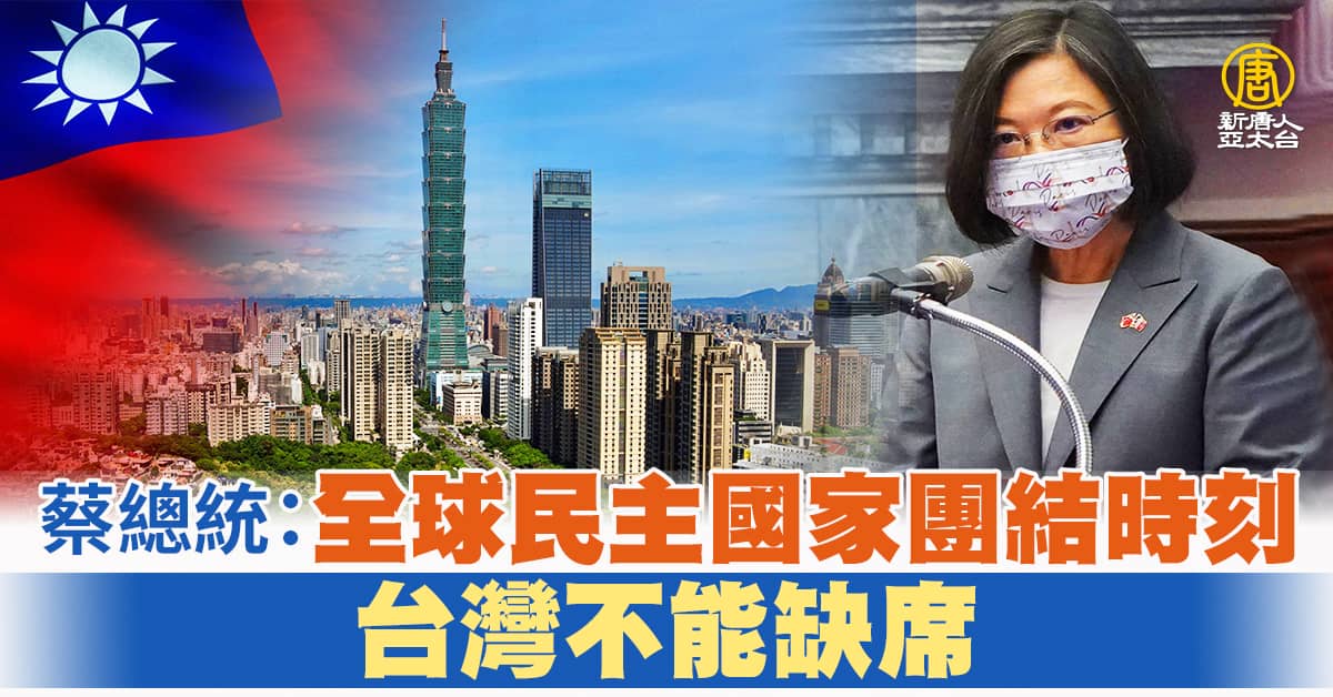 蔡總統:全球民主國家團結時刻 台灣不能缺席