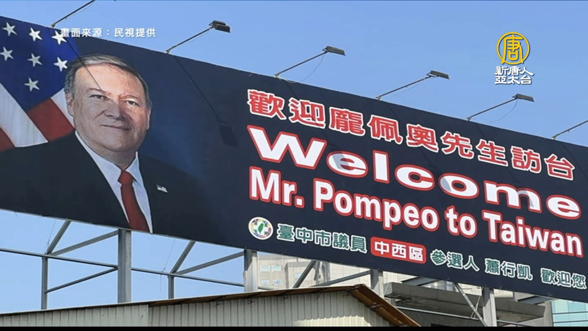 【新唐人亞太台 2022 年 03 月 02 日訊】美國前國務卿蓬佩奧,(2日)晚間抵達台灣桃園機場,來訪前,台中街頭就出現大型看板「歡迎蓬佩奧」,原來這是有意參選市議員的里長蕭行凱掛上,意外引發討論。蓬佩奧本人也看到,還推文回應,感謝這份溫暖。