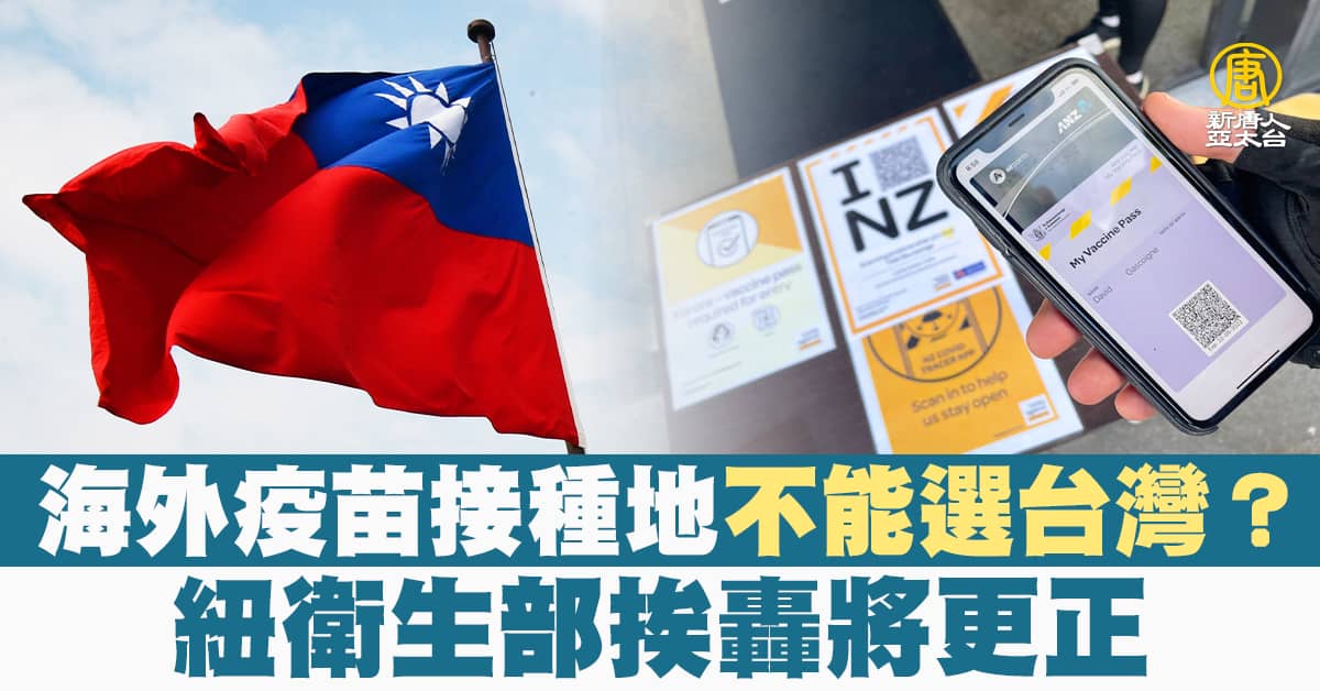 海外疫苗接種地不能選台灣?紐衛生部挨轟將更正
