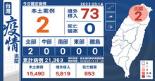 新增2例本土 1例為不明感染源 73例境外移入