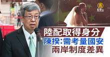 2024-03-01 12:37:56好,國民黨與民眾黨立委,研擬推動將陸配取得身分證的年限縮短。今天(1日)行政院長陳建仁受訪時強調,台灣現行規定,給陸配的權利已經比其他外配有更多保障,在考量陸配權益時,也需考慮兩岸政治、法律、社會制度差異,因此外配及陸配權益應按照不同立足點討論,不該併為一談。