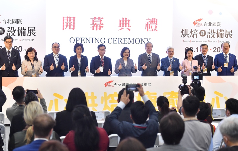 總統蔡英文(中)17日到台北南港展覽館出席台北國際烘焙暨設備展開幕典禮,並主持開幕儀式。(圖/中央社)