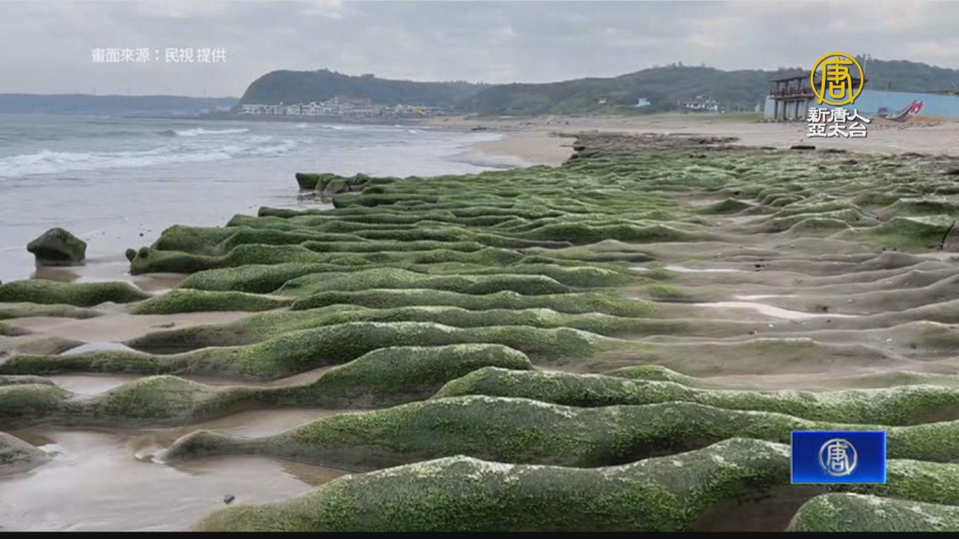 【新唐人亞太台 2022 年 03 月 18 日訊】新北石門著名景點老梅綠石槽,總是吸引大批遊客前往拍照,最近有民眾發現,一旁沙灘上覆蓋大量黑色沙粒,以為是受到油汙汙染。不過,黑色的沙其實是鐵砂。解說員表示因為早期火山爆發,鐵質隨著岩漿帶出而形成的特殊景觀,如果是油汙,不太可能飄這麼遠。