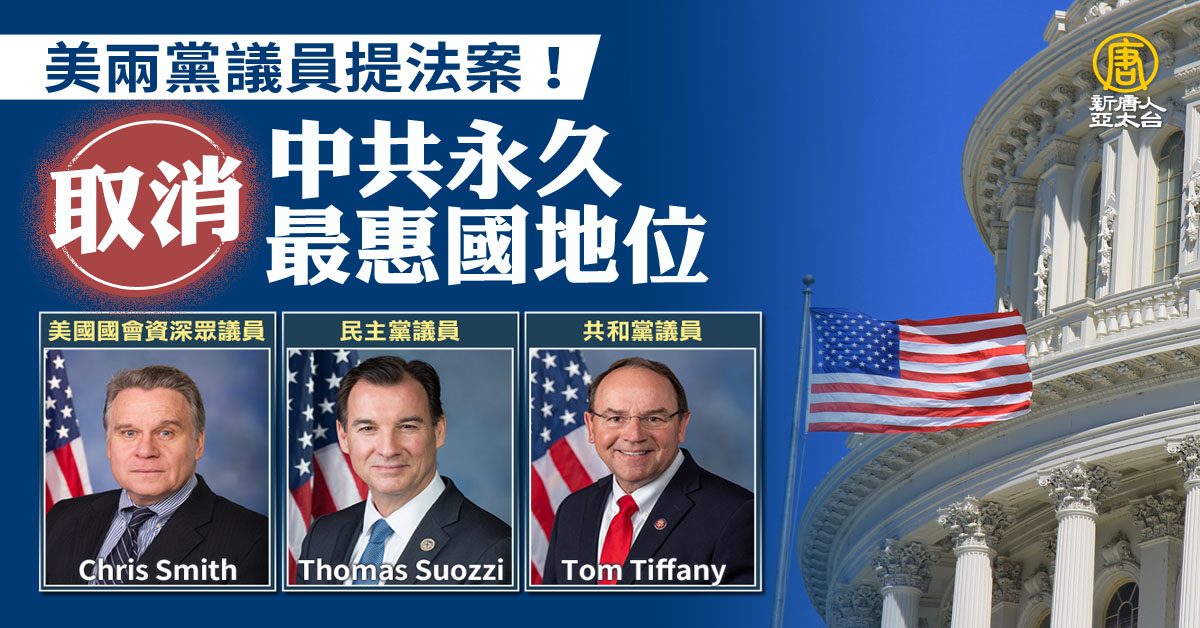美國國會資深眾議員史密斯(Chris Smith)22日宣布,聯合民主、共和兩黨議員蘇奧齊(Thomas Suozzi)和帝芬尼(Tom Tiffany),共同推出了一項新法案,旨在嚴懲中共的各種人權暴行,取消它們的最惠國待遇,撤銷中共在2000年獲得的「永久性正常貿易關係」(Permanent Normal Trade Relations,PNTR)地位。