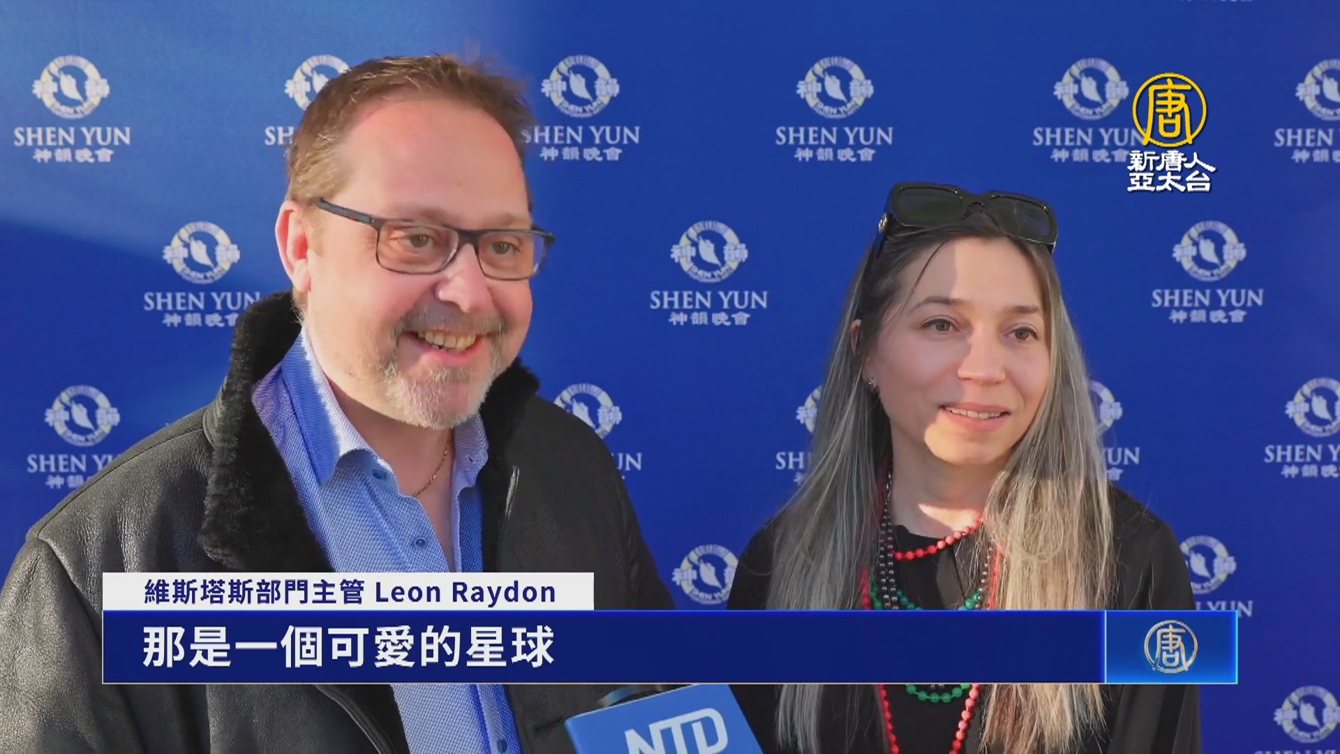 萊昂·雷登(Leon Raydon)是世界頂級風車製造公司維斯塔斯的現場主管,26日下午,他偕同妻子艾麗塔(Elitsa Raydon)觀賞了神韻演出。夫妻雙雙隨著演出神遊天上人間,忘記凡塵,被深深感動。