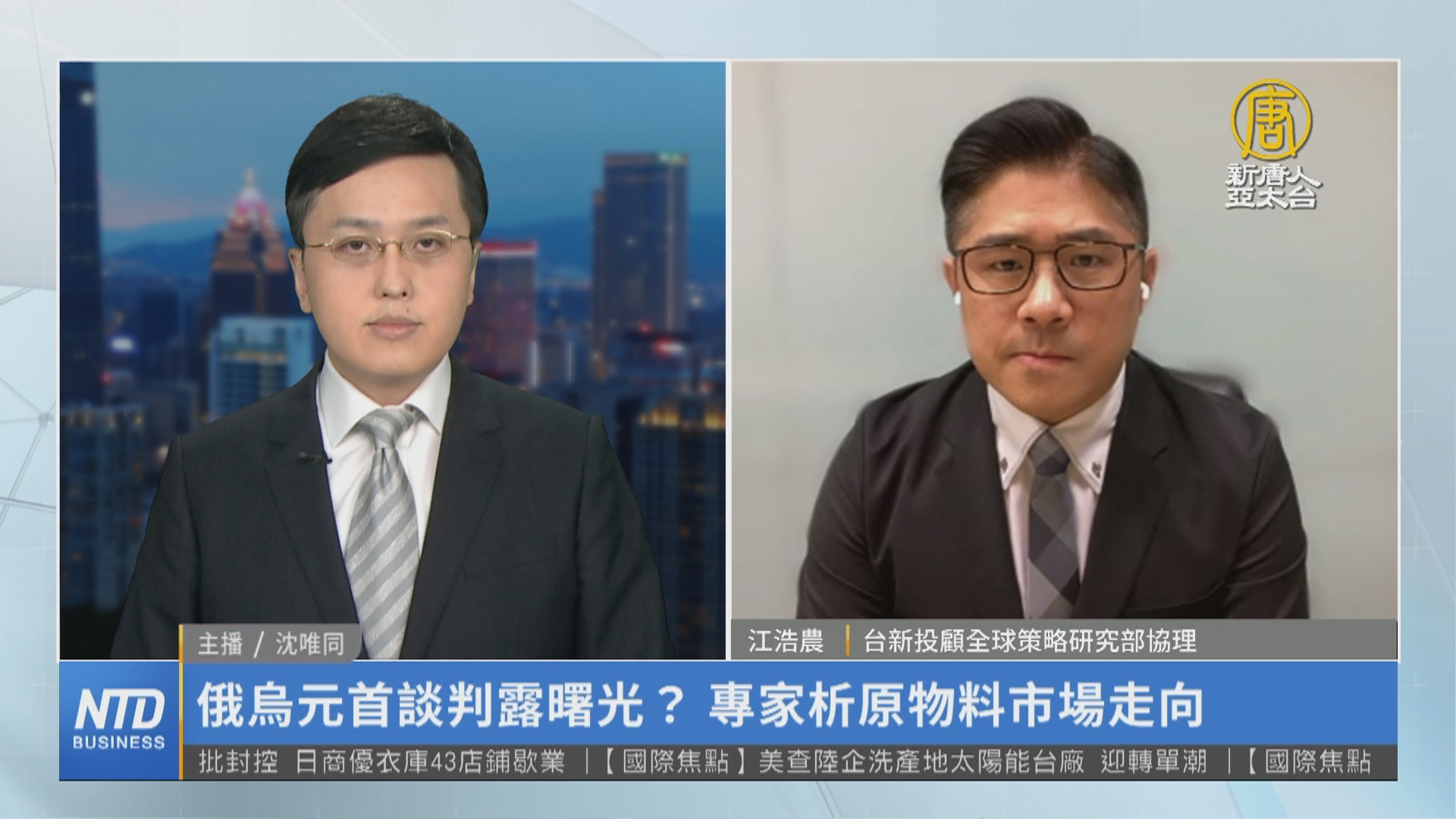 【新唐人亞太台 2022 年 03 月 30 日訊】俄烏局勢,傳出雙方出現和談契機,雖然尚未達成停火協議,市場避險情緒稍稍下降,我們請教資深分析師江浩農,大宗原物料市場未來走向,可以觀察哪些面向?由於多國像是原油、關鍵金屬等物資,供應鏈為求安全提高庫存,這波原物料價格下滑可以維持多久?請教您的看法。
