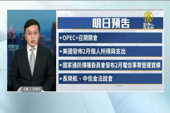 【新唐人亞太台 2022 年 03 月 30 日訊】帶您看到明天,3月31日,星期四,有哪些重要的財經活動。OPEC+召開開會。美國發佈2月個人所得與支出。國家通訊傳播委員會發布2月電信事業營運實績。長榮航、中信金法說會。