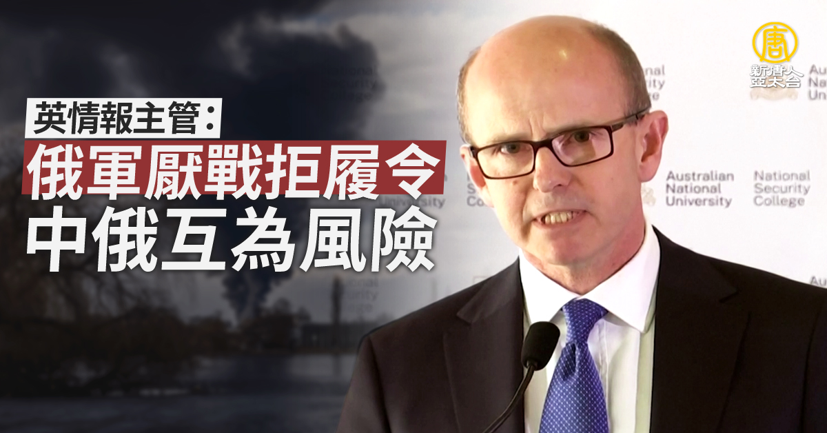 【新唐人亞太台 2022 年 03 月 31 日訊】英國情報機構政府通信總部(GCHQ)主管佛萊明週四(30日)演講表示,部分俄羅斯士兵已經出現軍心渙散、甚至擊落自家軍機。佛萊明還認為,中俄若過度緊密結盟,對雙方都是風險,俄羅斯可能被中共排擠丟一旁。