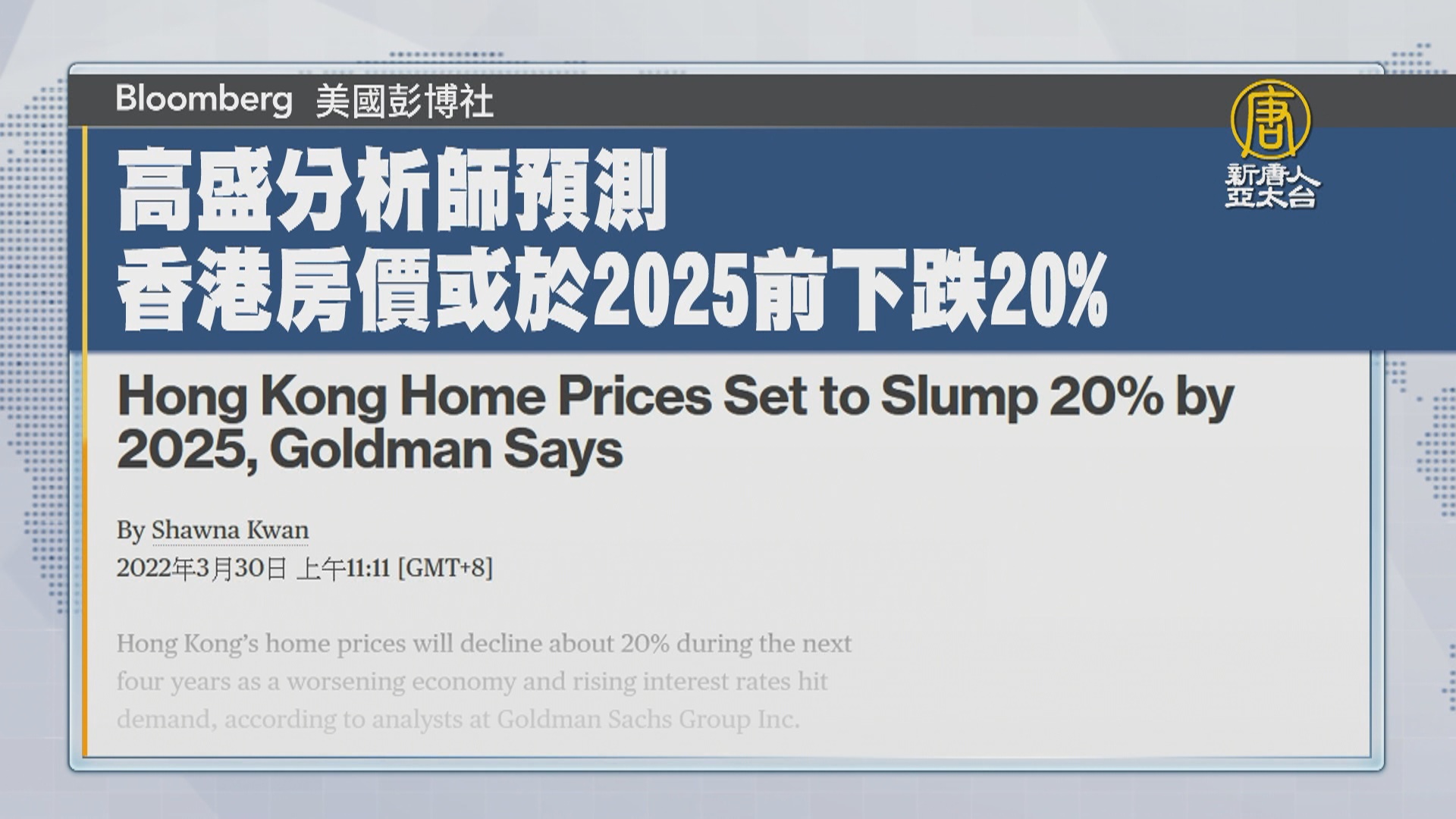 彭博社,高盛分析師預測,香港房價或於2025前下跌20%。