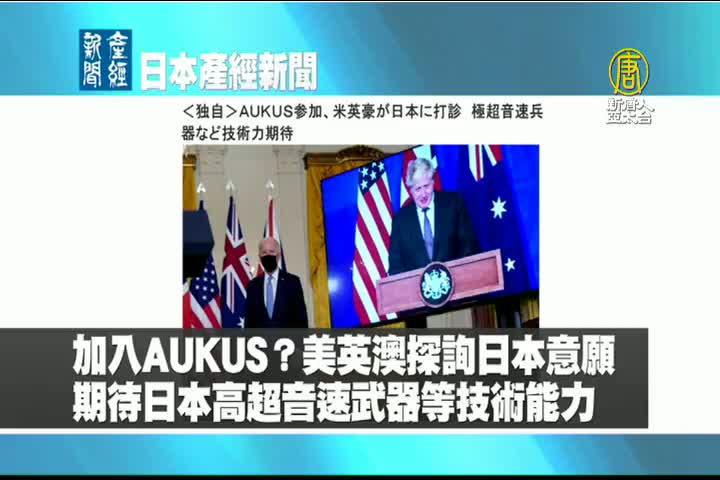 【新唐人亞太台 2022 年 04 月 13 日訊】來看到日本產經新聞報導:美國、英國、澳洲探詢日本是否有意願加入AUKUS,期待透過日本的加入來開發高超音速武器和加強電子作戰能力。