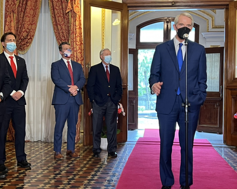 美參議員波特曼(圖)被問到美國政府恐不將台灣納入印太經濟架構時說,他支持台被納入,但他認為更重要的是盡速洽簽台美自由貿易協定。(圖/中央社)