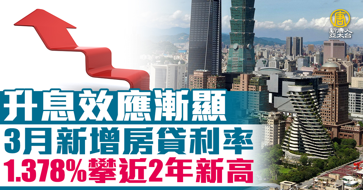 【新唐人亞太台 2022 年 04 月 22 日訊】央行升息效應逐漸顯現,中央銀行今天公布3月五大銀行新承做房貸平均利率為1.378%,不只連續4個月上升,更攀至近2年新高;央行官員表示,4月房貸利率反映升息的幅度會更明顯。
