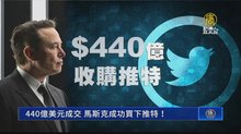 2022-04-26 13:21:46特斯拉創辦人馬斯克與推特之戰有了突破:4月25日,馬斯克以大約440億美元收購推特的交易被確認,預計交易將於今年完成,推特週一股價上漲。分析指出,推特董事會點頭有兩大原因,美國白宮與前總統川普也都對收購案,發表回應。