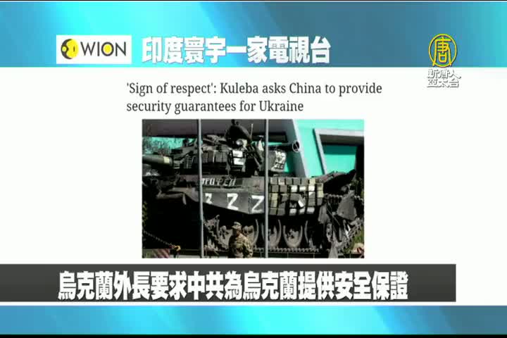 【新唐人亞太台 2022 年 05 月 02 日訊】最後是印度寰宇一家電視台報導:週日,烏克蘭外交部長庫列巴要求中共成為烏克蘭的安全保障國之一。