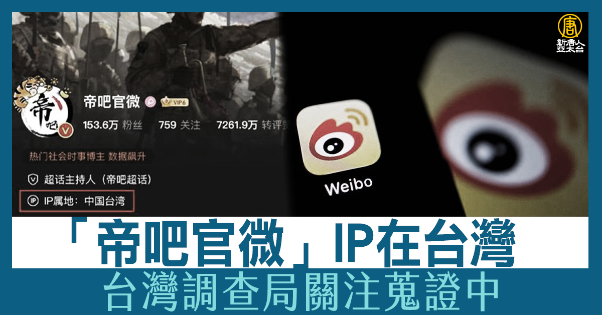 「帝吧官微」IP在台灣 台調查局蒐證中