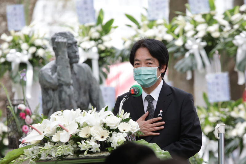 副總統賴清德(圖)8日出席在烏山頭水庫舉辦的「八田與一技師逝世80週年追思紀念會」,致詞感念八田與一對台灣的水利貢獻。(圖/中央社)