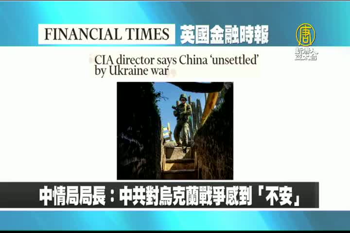 【新唐人亞太台 2022 年 05 月 09 日訊】接著是英國金融時報的報導:美國中情局局長表示,中共對烏克蘭戰爭感到「不安」。