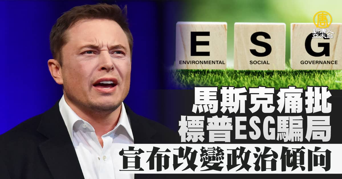 馬斯克痛批標普ESG騙局 宣布改變政治傾向