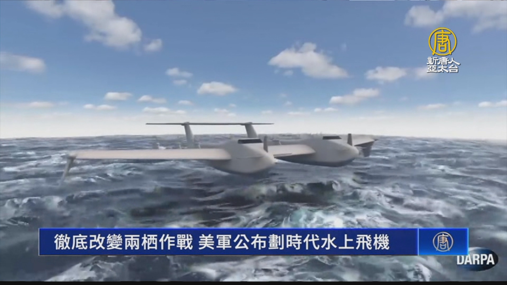 【新唐人亞太台 2022 年 05 月 20 日訊】美國國防高級研究計劃局,18日正式公布了美軍新一代水上飛機的概念影片,帶您來看美軍新世代水上飛機的外型。