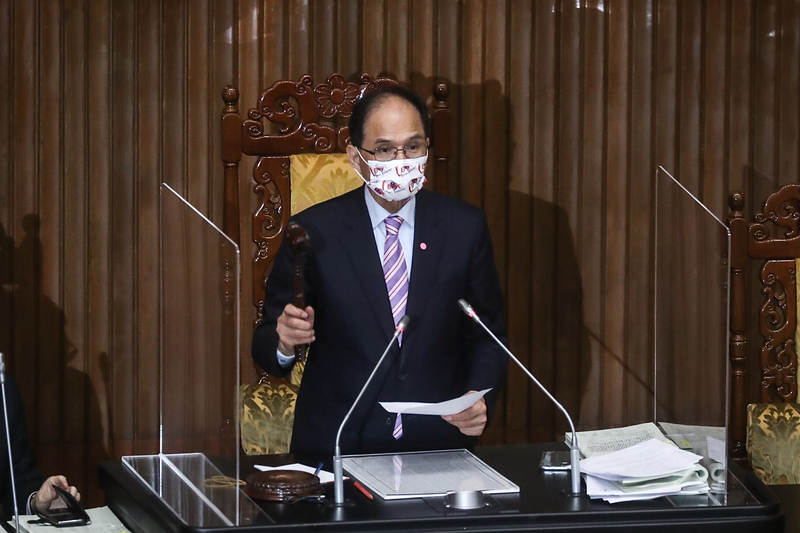 立法院會20日三讀通過修正國家安全法部分條文,圖為立法院長游錫堃敲槌通過。(圖/中央社)