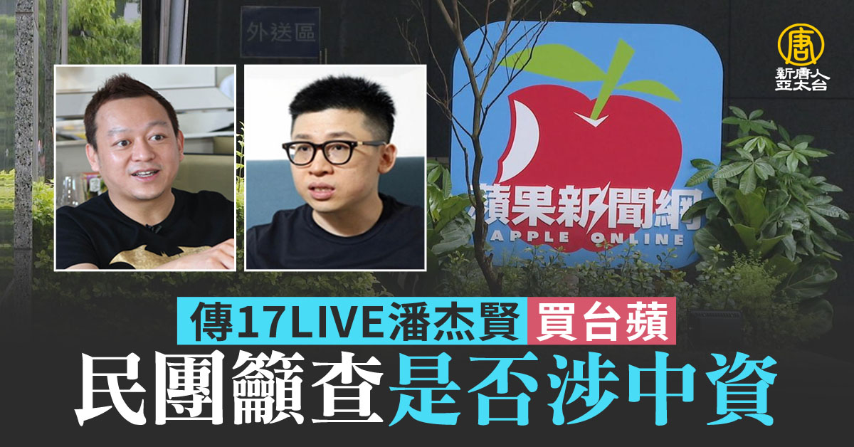 【新唐人亞太台 2022 年 06 月 09 日訊】台灣《蘋果新聞網》,週四聲明稱完成與新東家交接,傳出由17Live共同創辦人潘杰賢與香港商人黃浩共同收購,隨後17LIVE集團發聲明稱,潘杰賢近期並未參與17LIVE日常經營,更不是集團買下蘋果。但仍有民團呼籲投審會,嚴格把關有無中資,陸委會則表示,將依規定,做嚴格的審查。