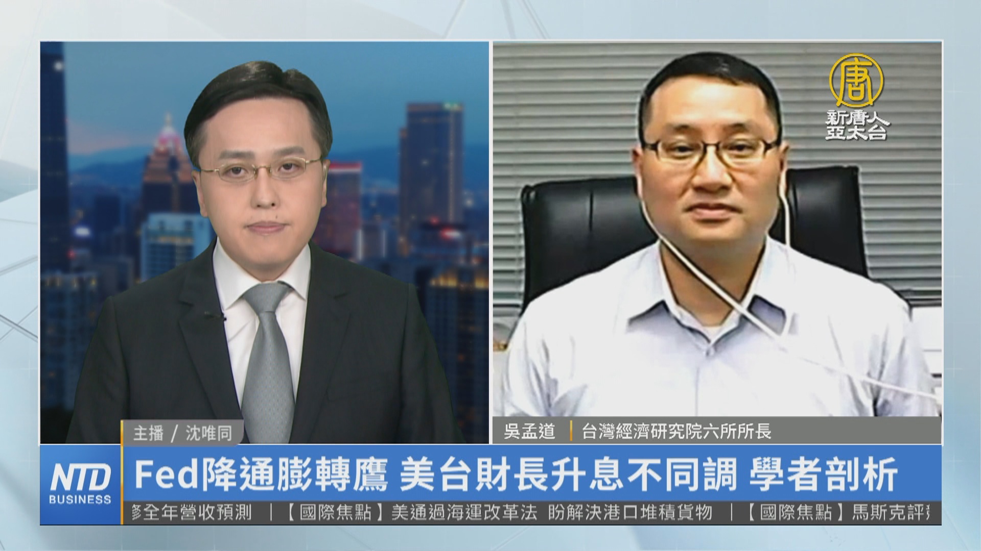 【新唐人亞太台 2022 年 06 月 15 日訊】美國聯準會即將公布利率決策,同時台灣中央銀行週四(16日)也將召開理監事會議。我們請教台經院六所所長吳孟道,怎麼看面對通膨高漲,美國這次升息力道?尤其台美利差逐步擴大,Fed強勢升息台灣是否跟進?