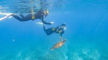 吳金黛第一次與海龜同遊。(圖/風潮音樂)