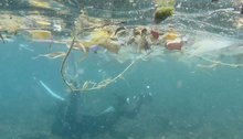因大雨而被沖刷帶進海中的懸浮垃圾。(圖/風潮音樂)