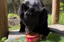高雄氣溫飆高 壽山動物園用水果製冰讓動物消暑
