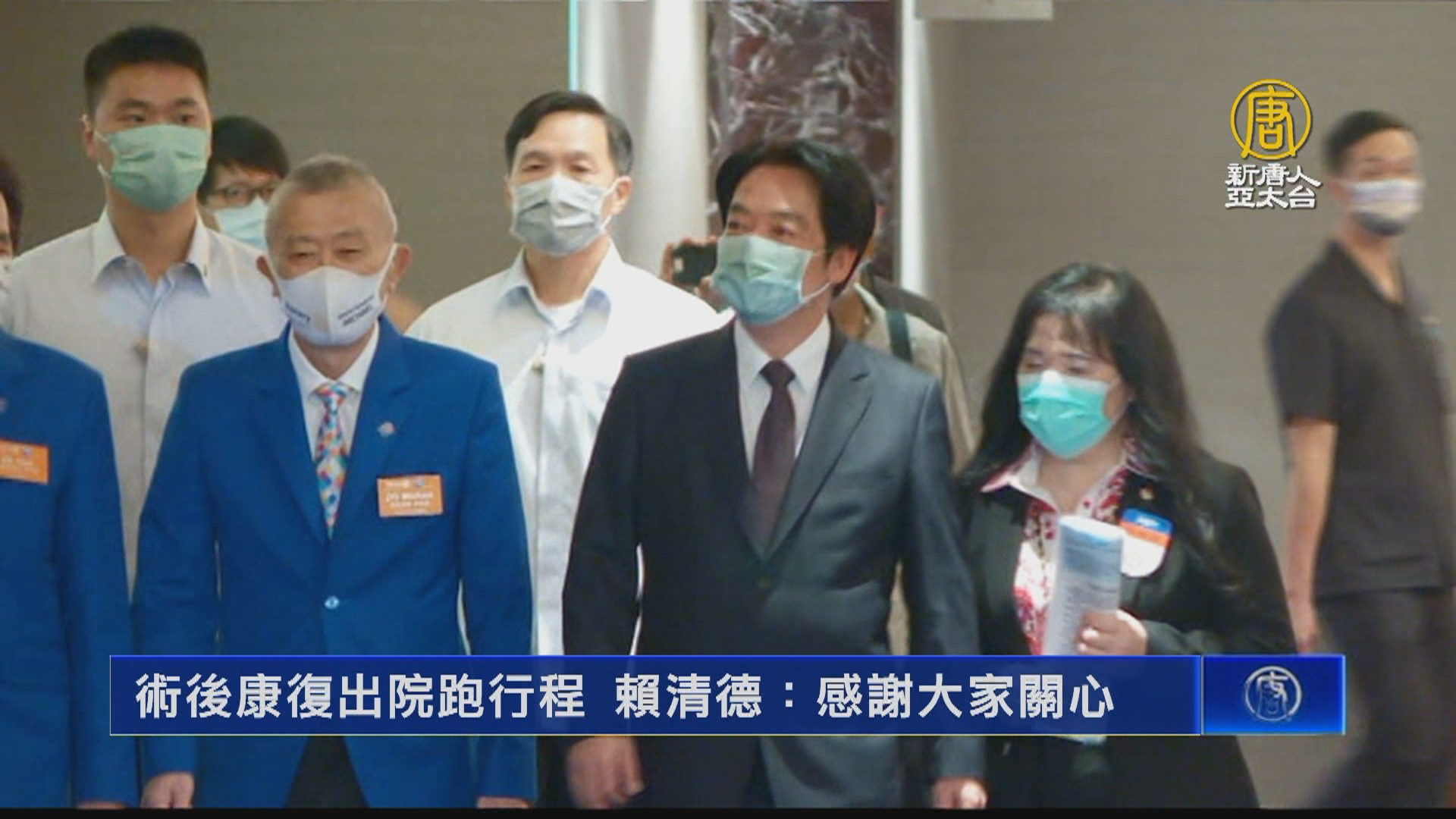 【新唐人亞太台 2022 年 06 月 28 日訊】副總統賴清德腰椎間盤突出壓迫神經開刀治療,在昨天(27)下午出院,康復後今天上午出席公開行程,媒體關注他的健康狀況。