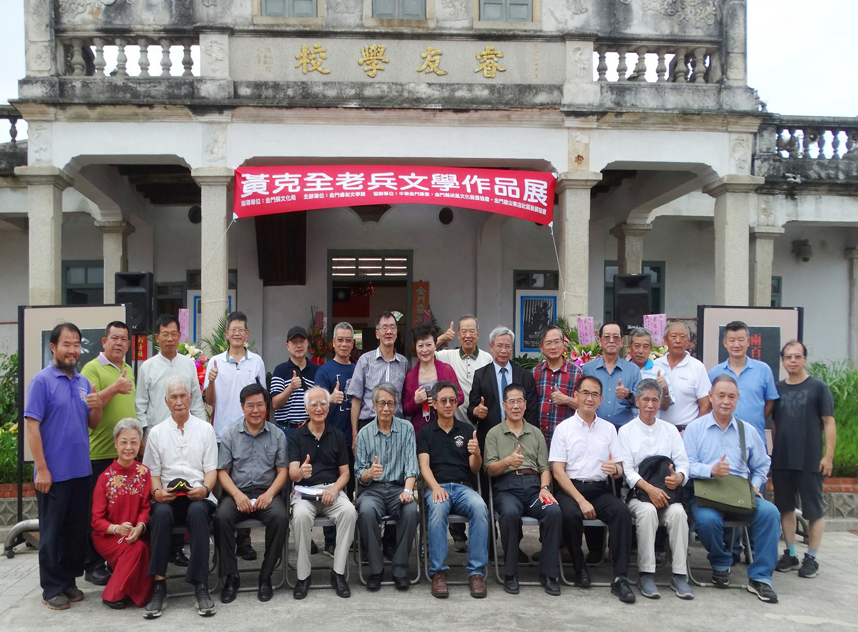 文化局長許績鑫以黃克全、王學敏夫妻嵌名聯「克勤克儉、情書為學,全能全智、聰慧而敏」,祝賀老兵文學展圓滿成功; 包括國立台灣文學館前館長陳益源、金馬聯合服務中心執行長翁明志、縣議員李應文、金沙鎮長吳有家、建設處長李有忠等也先後應邀致詞,肯定黃克全一系列以老兵為意象書寫,為老兵發聲的作品。