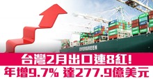 台灣2月出口連8紅!年增9.7% 達277.9億美元