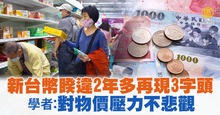 新台幣睽違2年多再現3字頭 學者:對物價壓力不悲觀