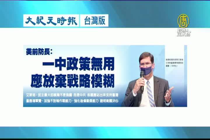 【新唐人亞太台 2022 年 07 月 20 日訊】接著看到大紀元時報台灣版報導:美國前國防部長艾斯培18日率領大西洋理事會訪問團來臺,他19日表示,對民主最大威脅不是俄羅斯, 而是中共,「一中政策」現在沒有用 了,美國應遠離「戰略模糊」。