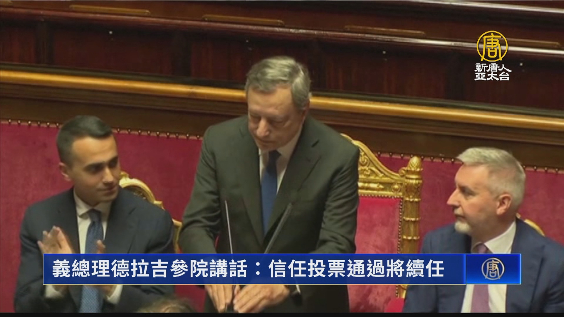 【新唐人亞太台 2022 年 07 月 20 日訊】帶您關心歐洲政局,在義大利總理德拉吉提出辭呈,遭到總統拒絕接受之後。德拉吉今天赴參議院發表演說,表示如果在議會兩院贏得信任投票,他將會繼續任職,並向國會喊話團結。