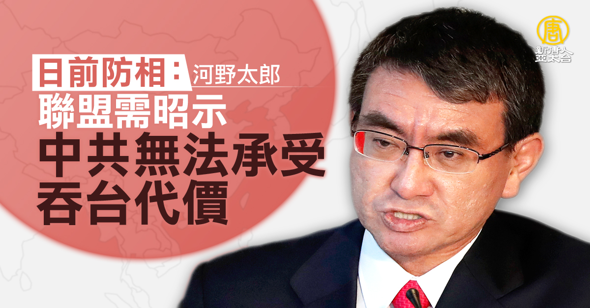 日本前外務大臣 河野太郎:「如果美國及其盟國能展現決心,這將向北京發出強烈信號。我們目標是展現決心,我們聯盟捍衛和保護自由民主人權法治等,捍衛這些共同價值的決心,並讓中(共)國意識到,其併吞台灣的進程,無法在(中共)可接受的成本及時間內實現。」