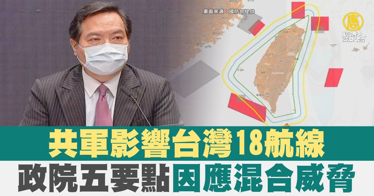共軍影響台灣18航線 政院五要點因應混合威脅