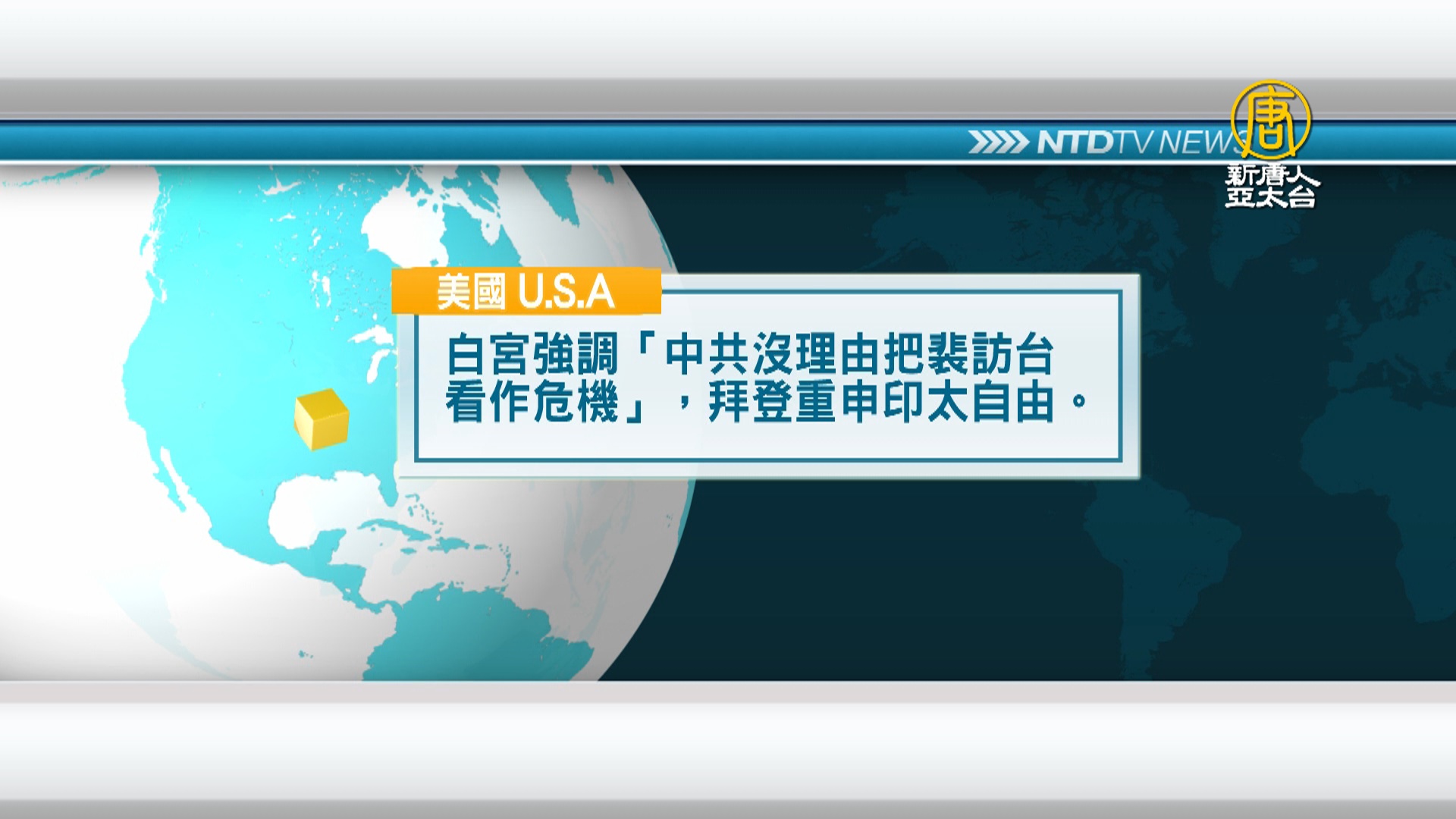 白宮強調「中共沒理由把裴訪台看作危機」,拜登重申印太自由。