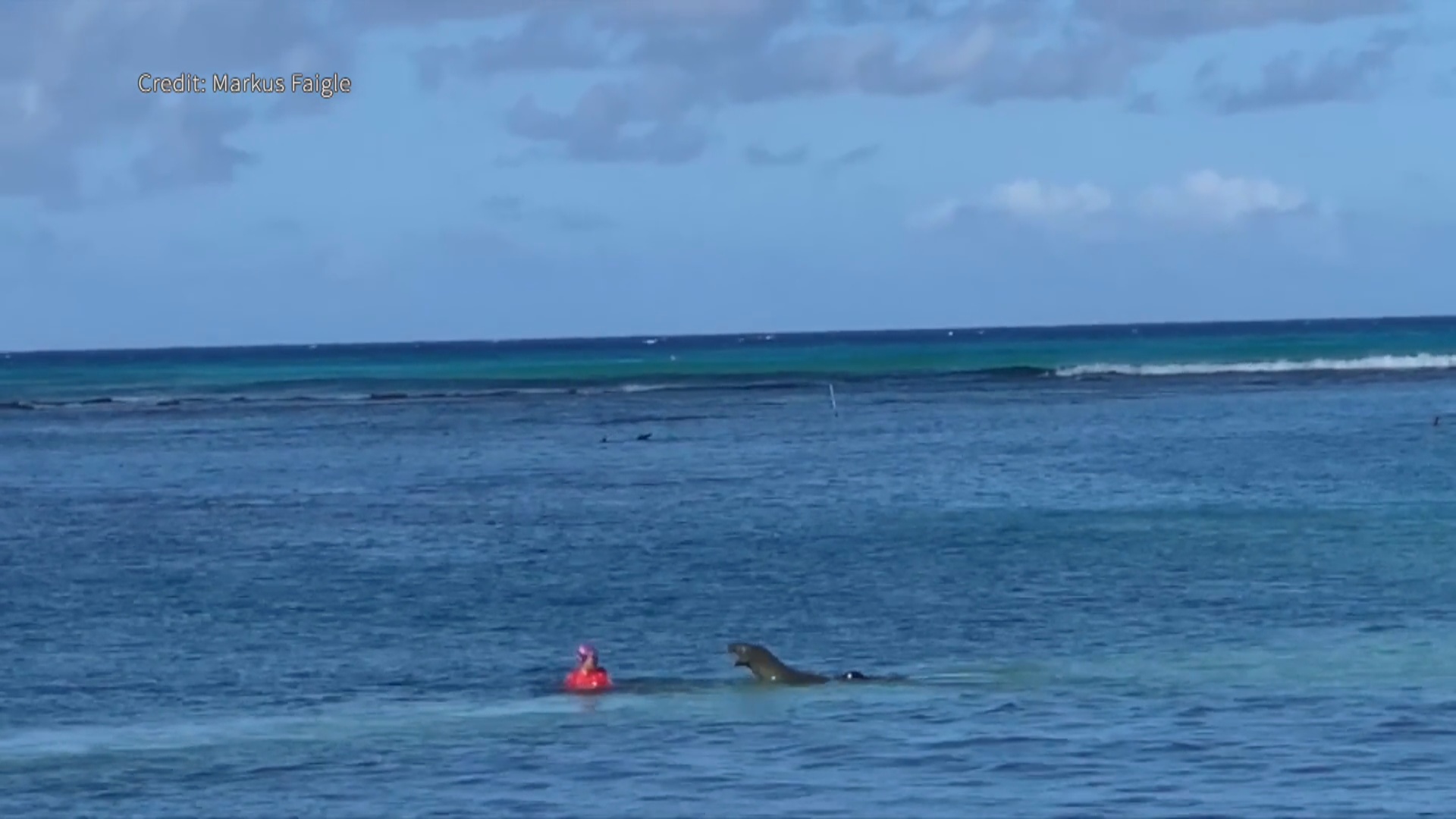 夏威夷雌僧海豹護幼崽 主動攻擊路過泳客