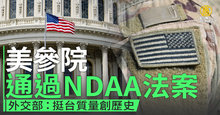 美參院通過NDAA法案 外交部:挺台質量創歷史