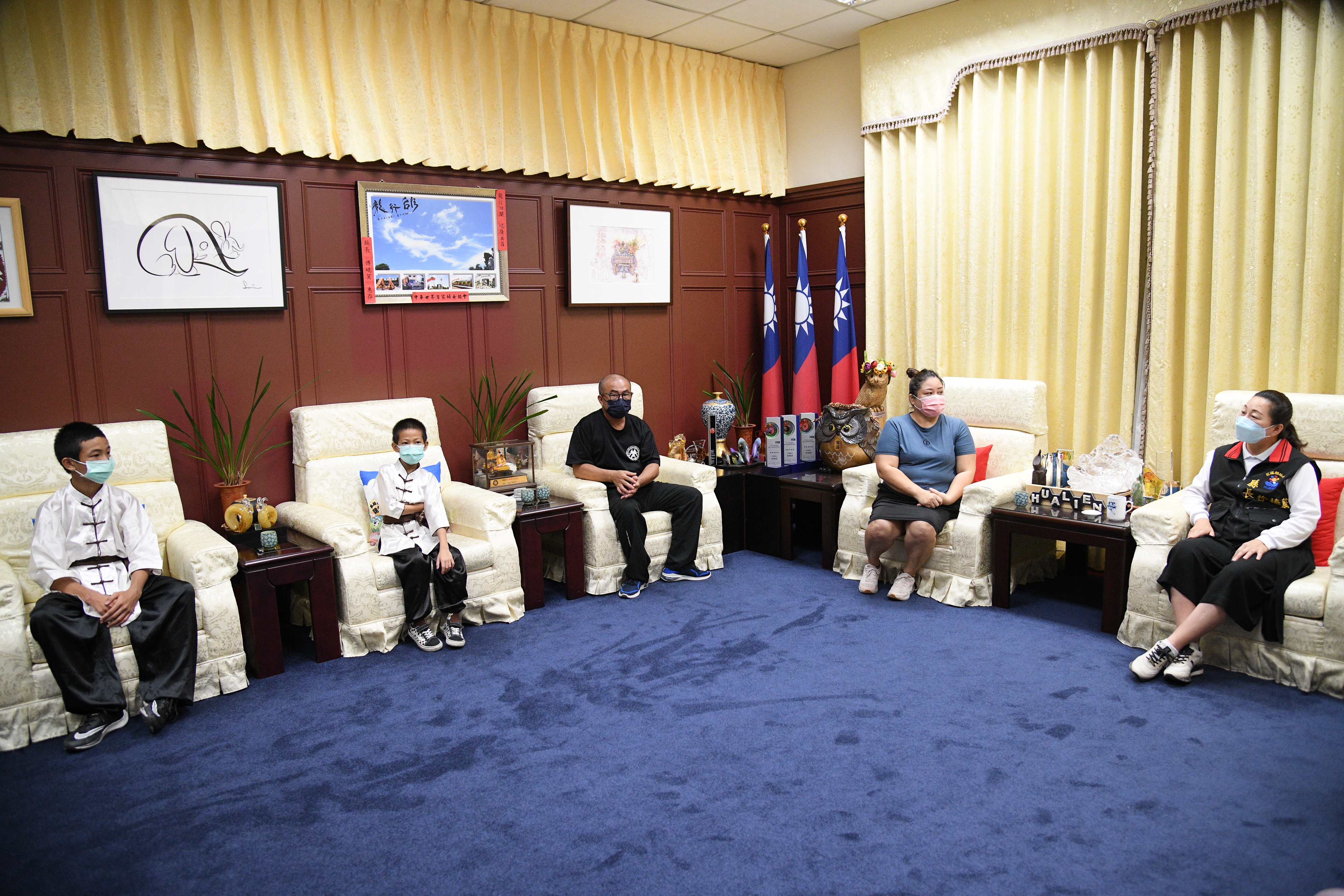 蔡文享、蔡文旻將代表參加世界武術大賽,縣長徐榛蔚鼓勵他們好好發揮,打出好成績。(花蓮縣政府 提供)