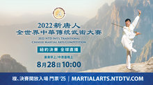 【新唐人亞太台 2022 年 08 月 22 日訊】旨在「承襲傳統,弘揚武德」的新唐人電視台主辦的2022「新唐人全世界中華傳統武術大賽」﹐下週四(8月25日)開始在紐約登場。大賽決賽將於下週日(8月28日)舉行﹐並通過網絡向全球直播決賽盛況。最高金獎可獲獎金5,000美元及名家製作寶劍一柄。